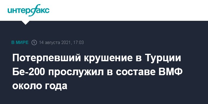Москва. 14 августа. INTERFAX.RU - Самолет-амфибия Бе-200, который разбился в субботу в Турции, был передан военным в 2020 году, сообщил "Интерфаксу" информированный источник.