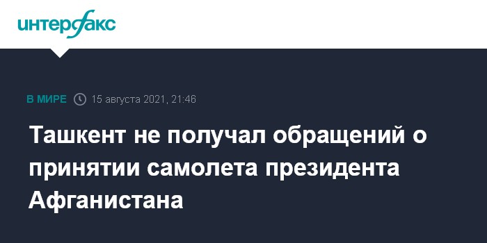"Обращений с просьбой принять борт с Гани в Ташкент не поступало. Ушедший в отставку с поста президента Афганистана не находится в Узбекистане", - сказал собеседник агентства.