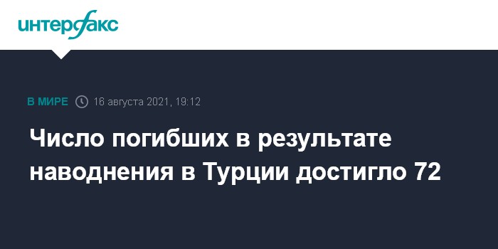 Москва. 16 августа. INTERFAX.RU - Число жертв наводнений и селей в причерноморских районах Турции достигло 72, сообщает в понедельник агентство Associated Press.
