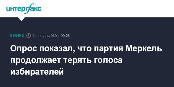 Москва. 16 августа. INTERFAX.RU - Партия канцлера ФРГ Ангелы Меркель Христианско-демократический союз (ХДС) продолжает терять голоса избирателей, Социал-демократическая партия Германии (СДПГ) пока их набирает, свидетельствуют результаты опроса, проведенного исследовательским институтом Insa по заказу таблоида Bild.