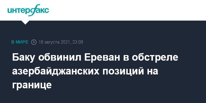Москва. 16 августа. INTERFAX.RU - Вооруженные силы Армении обстреляли позиции азербайджанских военных в различных направлениях границы - в направлении Нахчывана, Кяльбаджара и Гедабека, заявляет министерство обороны Азербайджана.