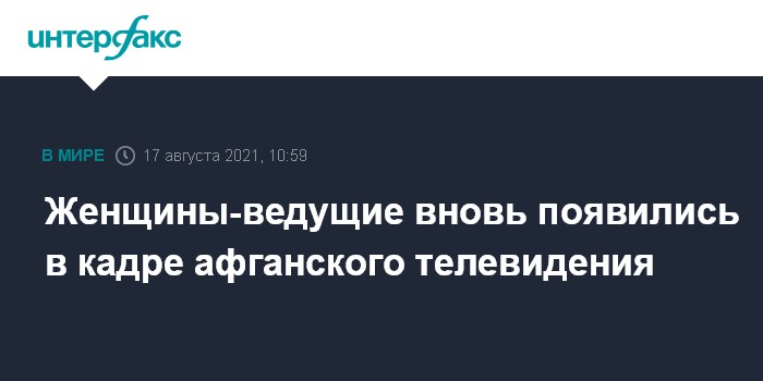 Москва. 17 августа. INTERFAX.RU - В эфире афганского телеканала TOLOnews вновь появились женщины-ведущие, которых отозвали от работы в кадре в воскресенье из соображений безопасности.