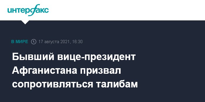 Бывший вице-президент Афганистана призвал сопротивляться талибам