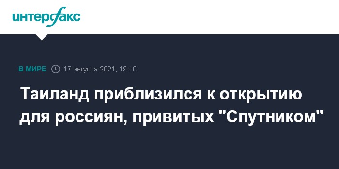 "Глава туристического управления Таиланда (TAT) Ютасак Супасорн заявил о том, что CCSA в понедельник одобрил для всех провинций, готовых принимать туристов, возможность въезда с прививкой от коронавируса вакциной "Спутник V". Это должно устранить препятствия для прибытия российских гостей", - пишет издание. О сроке начала действия этого решения не сообщается.