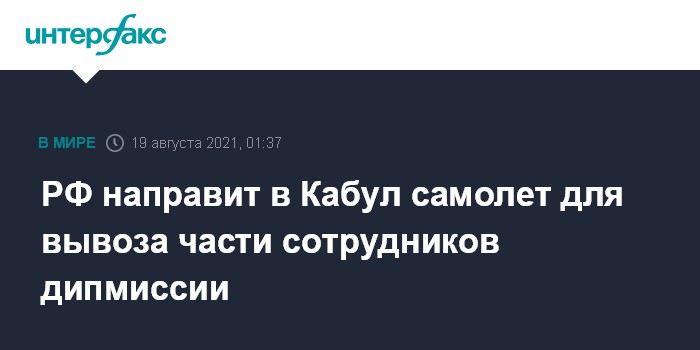 РФ направит в Кабул самолет для вывоза части сотрудников дипмиссии