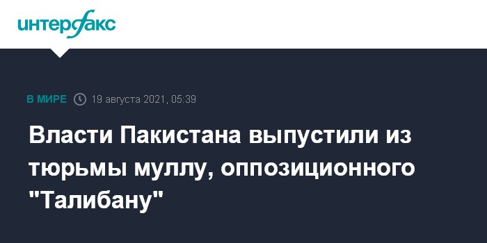 Москва. 19 августа. INTERFAX.RU - Правительство Пакистана освободило из тюрьмы лидера оппозиционной группировки движения "Талибан" (запрещенная в России террористическая организация) муллу Мухаммада Расула, сообщило в четверг афганское информационное агентство Pajhwok.