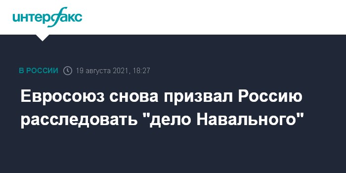 Москва. 19 августа. INTERFAX.RU - В Евросоюзе снова призвали Россию расследовать то, что случилось с Алексеем Навальным ровно год назад. Об этом говорится в заявлении представителя Европейской внешнеполитической службы.