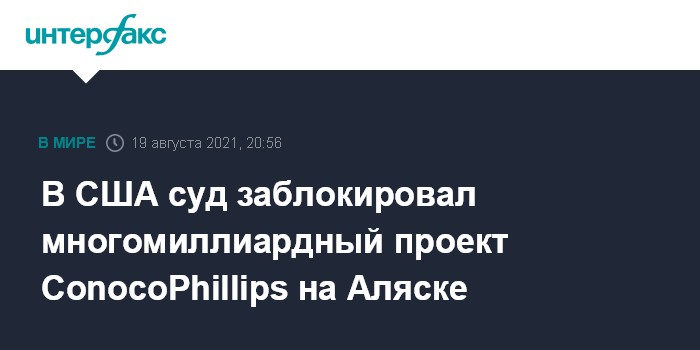 Москва. 19 августа. INTERFAX.RU - Судья суда округа Аляска Шэрон Глисон заблокировала Willow - многомиллиардный нефтяной проект ConocoPhillips на Аляске, посчитав, что власти страны, одобрившие его ранее, недооценили потенциальные негативные последствия добычи нефти для климата.