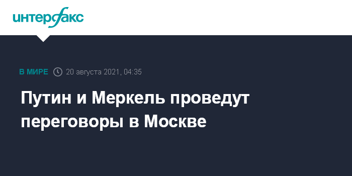 Москва. 20 августа. INTERFAX.RU - Президент РФ Владимир Путин в пятницу в Москве встретится с канцлером Германии Ангелой Меркель, это будет их первая личная встреча за последние три года.