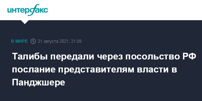 Талибы передали через посольство РФ послание представителям власти в Панджшере