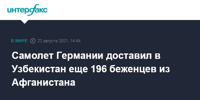 Москва. 22 августа. INTERFAX.RU - Очередной военно-транспортный борт ВВС Германии прибыл в Ташкент из Кабула с беженцами и гражданами Евросоюза, сообщил в воскресенье "Интерфаксу" представитель аэропорта.