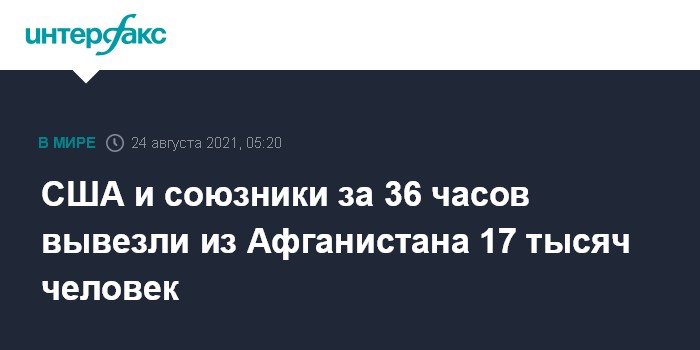 По его словам, Вашингтон рассчитывает вывезти всех американцев до 31 августа - объявленного крайнего срока вывода американских войск из Афганистана. К настоящему моменту суммарно эвакуировано уже около 37 тыс. человек.