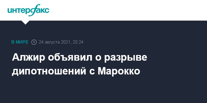 Москва. 24 августа. INTERFAX.RU - Глава МИД Алжира Рамтан Ламамр объявил во вторник о разрыве дипломатических отношений его страны с Марокко.