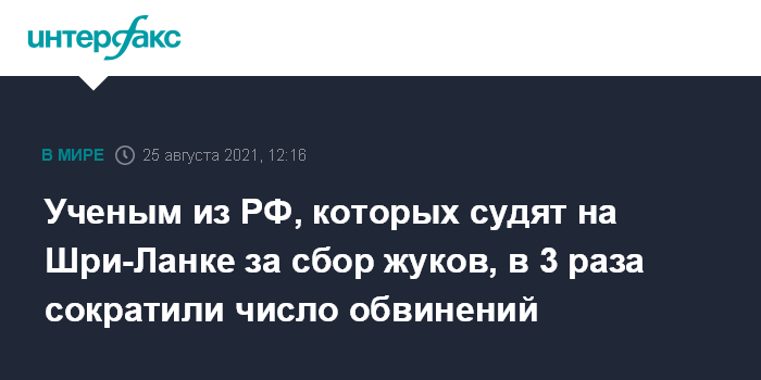 Ученым из РФ, которых судят на Шри-Ланке за сбор жуков, в 3 раза сократили число обвинений