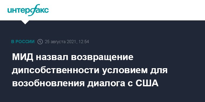 Москва. 25 августа. INTERFAX.RU - Возобновление полноценного диалога с США будет невозможно до тех пор, пока не будет возвращена российская дипломатическая собственность, заявил "Интерфаксу" статс-секретарь, замглавы МИД России Евгений Иванов.