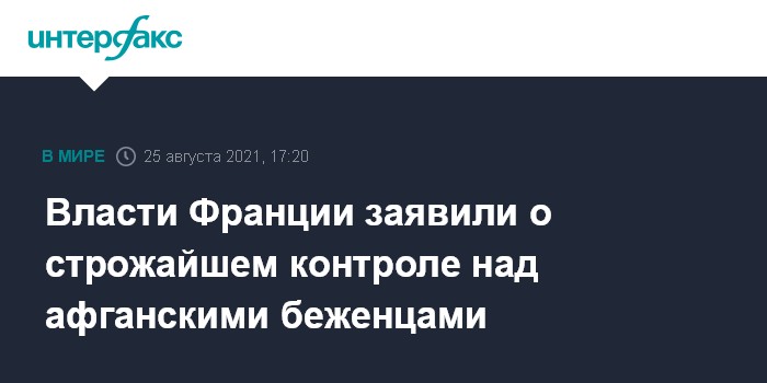 Москва. 25 августа. INTERFAX.RU - Франция, принимая эвакуированных афганцев, не допустит в отношении них никакой неоправданной толерантности и не поступится своей безопасностью, спецслужбы страны осуществляют строжайший контроль над беженцами из Афганистана, заявил официальный представитель французского правительства Габриэль Атталь.