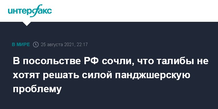 В посольстве РФ сочли, что талибы не хотят решать силой панджшерскую проблему