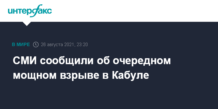 Москва. 26 августа. INTERFAX.RU - Еще один сильный взрыв прогремел в четверг вечером в афганской столице, сообщают французские СМИ со ссылкой на очевидцев.