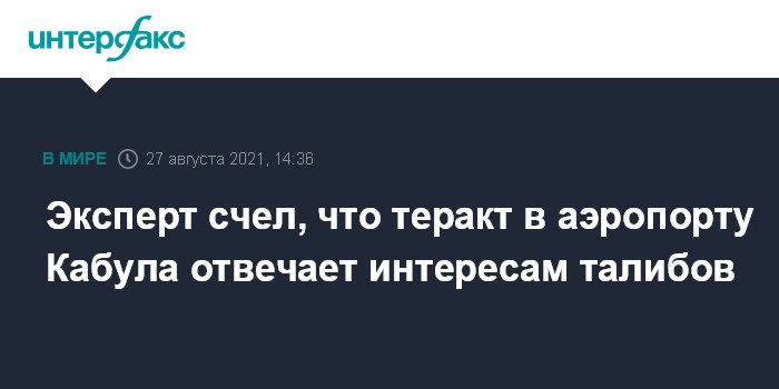"Талибы могут выступать с любыми заявлениями о том, что они разберутся и проведут расследование. Но факт остаётся фактом - люди теперь будут бояться улетать из аэропорта в Кабуле. И таким образом, миссия США по эвакуации быстрее закончится. Поэтому данный теракт, сам по себе, полностью отвечает интересам талибов, поскольку ускоряет уход США из кабульского аэропорта", - сказал Евсеев в пятницу "Интерфаксу".