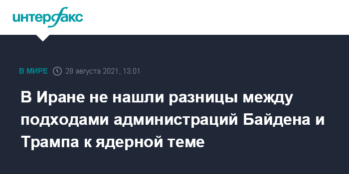 Москва. 28 августа. INTERFAX.RU - Верховный лидер Ирана аятолла Али Хаменеи в субботу заявил, что США "бессовестно действовали" в ситуации с ядерными переговорами, и что нынешняя администрация президента Джо Байдена в этом вопросе не отличается от предыдущей при Дональде Трампе.