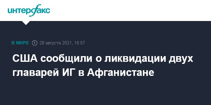 Москва. 28 августа. INTERFAX.RU - Американские военные в ходе нанесенного накануне авиаудара сумели ликвидировать двух главарей террористической группировки ИГ (запрещена в России), сообщил в субботу генерал-майор ВС США Хэнк Тэйлор.