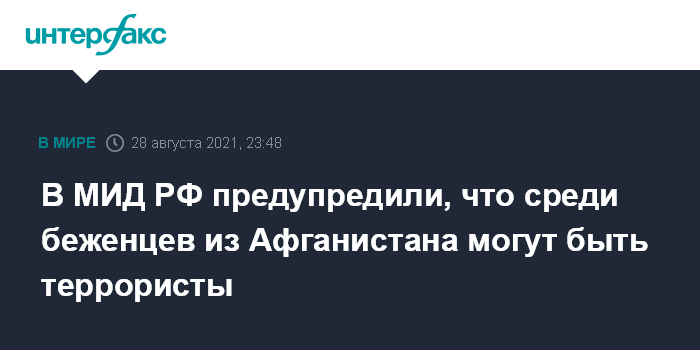 В МИД РФ предупредили, что среди беженцев из Афганистана могут быть террористы