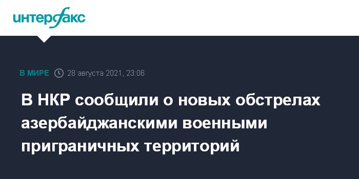 Москва. 28 августа. INTERFAX.RU - Вооруженные силы Азербайджана вновь нарушили режим прекращения огня, сообщает министерство обороны непризнанной Нагорно-Карабахской Республики в субботу.
