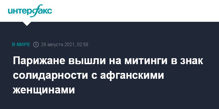 Москва. 29 августа. INTERFAX.RU - Протестующие вышли на улицы Парижа в субботу, чтобы потребовать немедленной эвакуации афганцев, которым угрожает правление талибов. Об этом сообщает Ruptly.