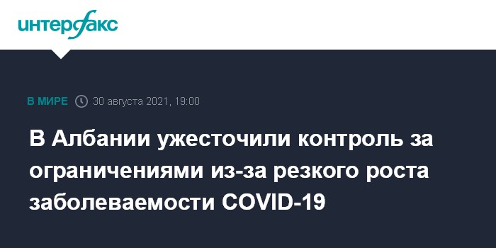 Москва. 30 августа. INTERFAX.RU - В Албании на фоне роста заболеваемости коронавирусом вводят дополнительный контроль за соблюдением ограничительных мер, сообщает в понедельник агентство Associated Press.