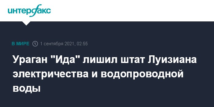 Москва. 1 сентября. INTERFAX.RU - Сотни тысяч жителей Луизианы остались без электричества, водопроводной воды и бензина после урагана "Ида" во вторник, сообщает Associated Press.