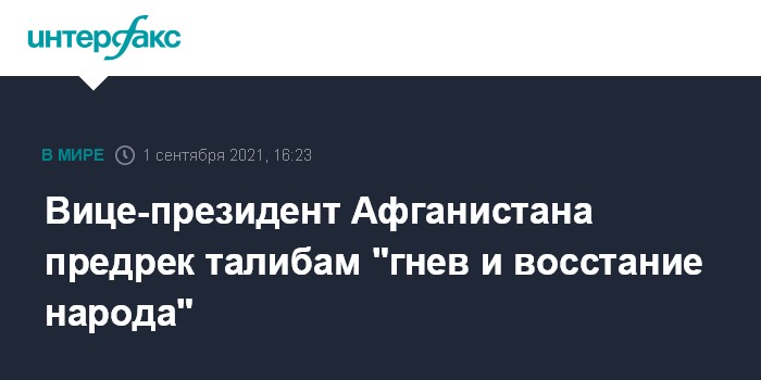 Вице-президент Афганистана предрек талибам "гнев и восстание народа"