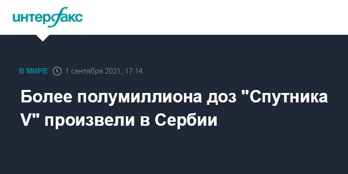 "Министр без портфеля Ненад Попович, ответственный за инновации и технологическое развитие, сообщил, что российский Институт им. Гамалеи одобрил использование 550 тыс. доз вакцины "Спутник V", произведенных в Торлаке до 13 августа", - говорится в сообщении на сайте правительства Сербии.