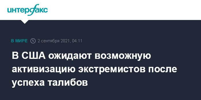 Ранее американская компания SITE Intelligence Group, ведущая мониторинг информационной активности экстремистов, сообщила, что захват власти талибами в Афганистане "активизировал крайне правые экстремистские сообщества, будь то из-за их желания подражать талибам или все более агрессивной риторики о "вторжениях" перемещенных афганцев".