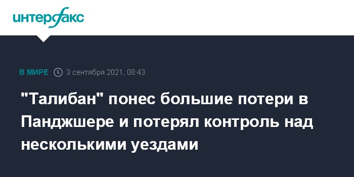 "Талибан" понес большие потери в Панджшере и потерял контроль над несколькими уездами