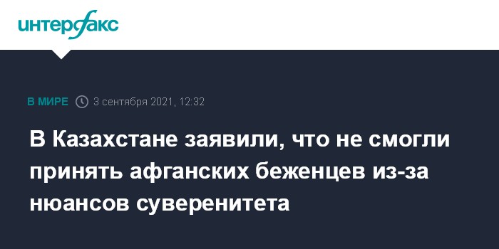 Москва. 3 сентября. INTERFAX.RU - Казахстан не смог принять афганских беженцев, которые работали на американскую администрацию, так как возникло множество нюансов и вопросов, связанных с суверенитетом республики и логистикой, сообщил президент страны Касым-Жомарт Токаев.