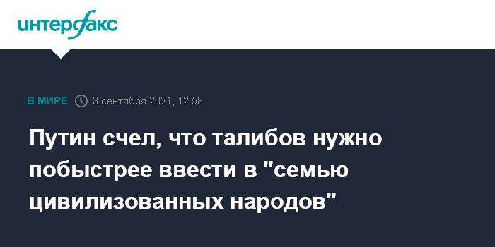 Путин счел, что талибов нужно побыстрее ввести в "семью цивилизованных народов"
