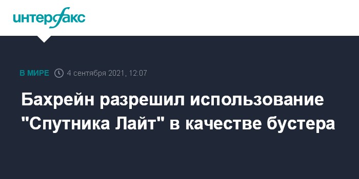 "Королевство Бахрейн официально одобрило использование однокомпонентной вакцины "Спутник Лайт" в качестве одного из двух возможных бустеров", - сообщается в твиттере производителя вакцины со ссылкой на новостной портал GDN Online.
