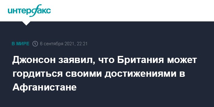 Москва. 6 сентября. INTERFAX.RU - Великобритания добилась серьезных достижений в Афганистане, в частности, сумев вместе с союзниками защитить Запад от группировки "Аль-Каида" (запрещена в РФ), заявил в понедельник палате общин британского парламента премьер-министр Борис Джонсон.