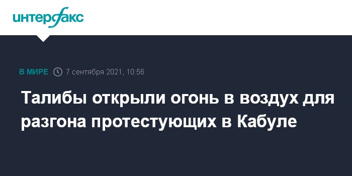 Москва. 7 сентября. INTERFAX.RU - Боевики движения "Талибан" (запрещенная в РФ террористическая организация) несколько раз выстрелили в воздух, чтобы разогнать участников акций протестов в Кабуле, сообщает во вторник телеканал Tolo News.