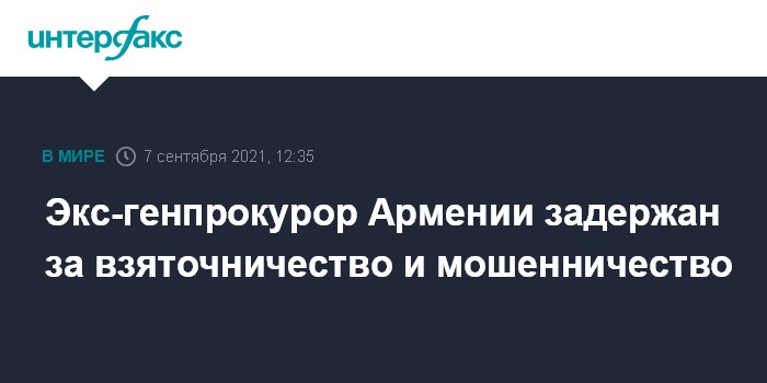 Экс-генпрокурор Армении задержан за взяточничество и мошенничество