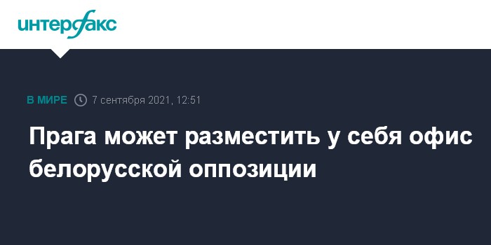 Москва. 7 сентября. INTERFAX.RU - Власти Чехии хотят создать в Праге офис белорусских демократических сил, сообщил во вторник телеграм-канал лидера белорусской оппозиции Светланы Тихановской.