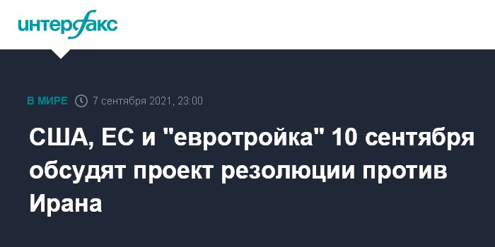 США, ЕС и "евротройка" 10 сентября обсудят проект резолюции против Ирана