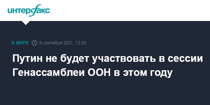 Путин не будет участвовать в сессии Генассамблеи ООН в этом году