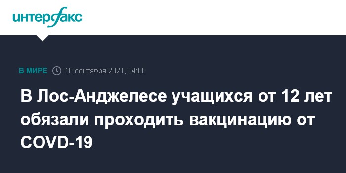 В Лос-Анджелесе учащихся от 12 лет обязали проходить вакцинацию от COVD-19