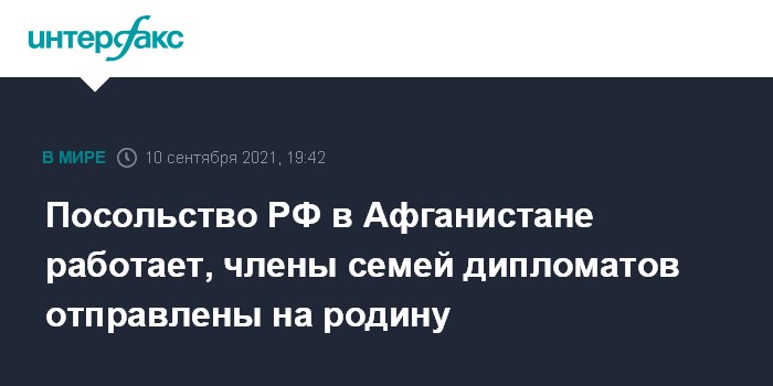 Посольство РФ в Афганистане работает, члены семей дипломатов отправлены на родину