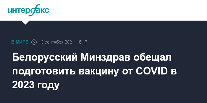 Москва. 13 сентября. INTERFAX.RU - Белорусская вакцина от COVID-19 будет готова в 2023 году, заявил министр здравоохранения республики Дмитрий Пиневич.