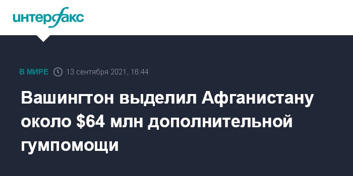 Москва. 13 сентября. INTERFAX.RU - Соединенные Штаты предоставляют Афганистану дополнительную гуманитарную помощь в размере около $64 млн, объявила в понедельник постпред США при ООН Линда Томас-Гринфилд.