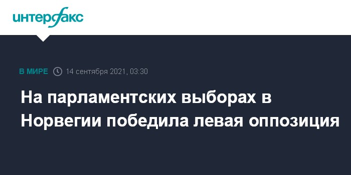 Москва. 14 сентября. INTERFAX.RU - На прошедших в Норвегии парламентских выборах победу одержала Рабочая партия во главе с Йонасом Гара Стере, сообщают СМИ со ссылками на результаты подсчета 97% голосов избирателей.
