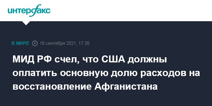 МИД РФ счел, что США должны оплатить основную долю расходов на восстановление Афганистана