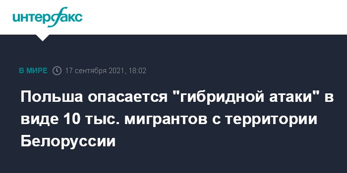 Москва. 17 сентября. INTERFAX.RU - Польский премьер Матеуш Моравецкий заявляет, что в Белоруссии находятся более 10 тыс. мигрантов, которые могут наводнить Польшу и Литву.